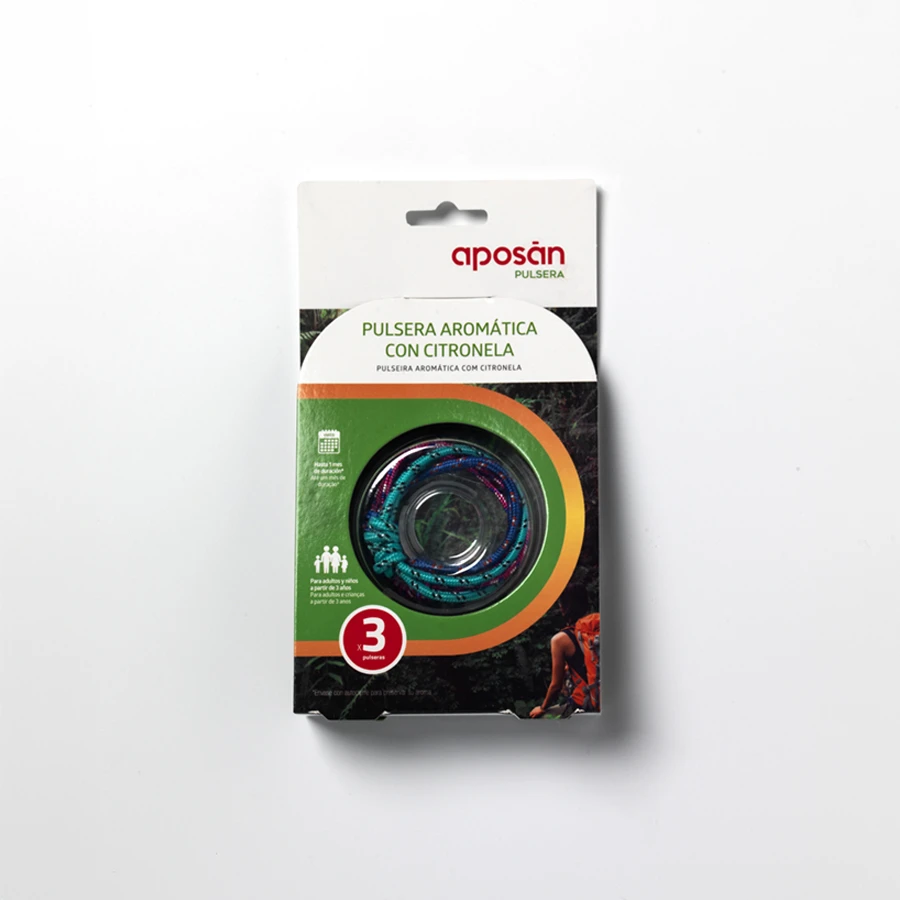Decubre la gama de pulseras aromáticas, ¡te encantarán todos sus formatos y colores! Y si ya te han picado... Post-picaduras Aposán.