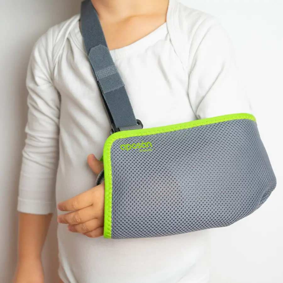 Cabestrillo infantil para el soporte del brazo fabricado con tejido extremadamente transpirable. Tejido con certificado OEKOTEX (libre de tóxicos). Con